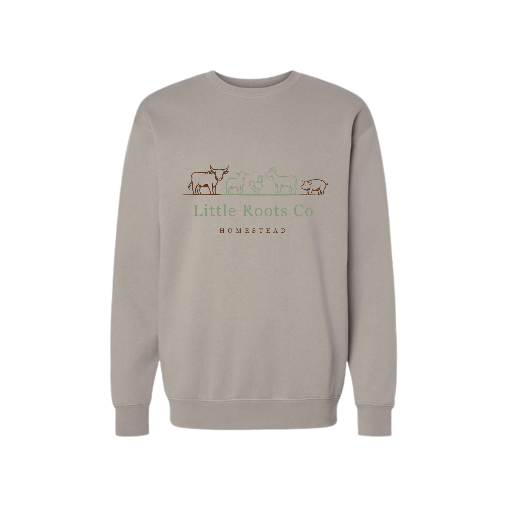 Stay warm while representing the homestead lifestyle with the official Little Roots Co LRC Logo Crewneck Sweatshirt, printed on the premium Independent Trading Co IND3000 Heavyweight Crewneck Sweatshirt. Built for durability, warmth, and everyday comfort, this crewneck is perfect for chore mornings, farm work, and cool weather wear.